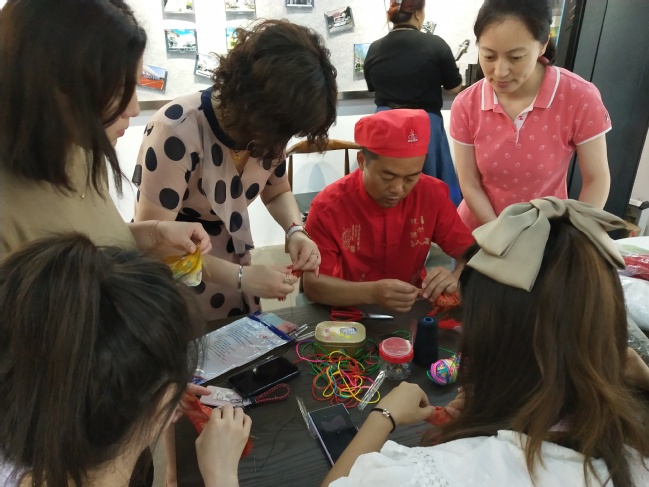 集体生日会活动正逢端午佳节之际,学院工会还邀请唐艺师傅为教职工制作香囊,现场热闹非凡,洋溢着喜庆的氛围。唐艺师傅为大家展示了制作香囊的过程,将防蚊防虫中药放在香包袋,抽紧口袋绳束,有的老师也把自己缝制好的香包炫耀一番,现场香味持久,大家脸上都洋溢着开心的笑容。
