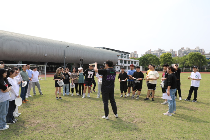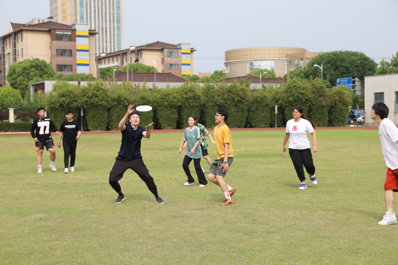 本次活动分为飞盘技巧讲座、飞盘技巧训练和团队比赛三个环节,在王云飞副校长热情洋溢的致辞后,创协飞盘俱乐部的吴旭明和TOM老师为大家带来了飞盘运动技巧讲解,旨在全方位提升师生们的飞盘技能和团队协作能力。随后大家一起移步操场进行专项训练和比赛,在飞盘技巧训练环节中,教练们一一耐心指导,参与者们相互交流经验,争先恐后地展示自己的技巧。在团体比赛中,奔跑、传盘、接盘,师生们需注重的不仅仅是飞盘技巧,队友之间的相互配合也同样重要。手握飞盘,驰骋绿茵,大家在心中计划着出盘力度与方向,也时刻关注着队友的走位,努力争取每一次得分的机会,协作、配合,活动中体现了“盘不落地,永不放弃”的飞盘活动拼搏精神。