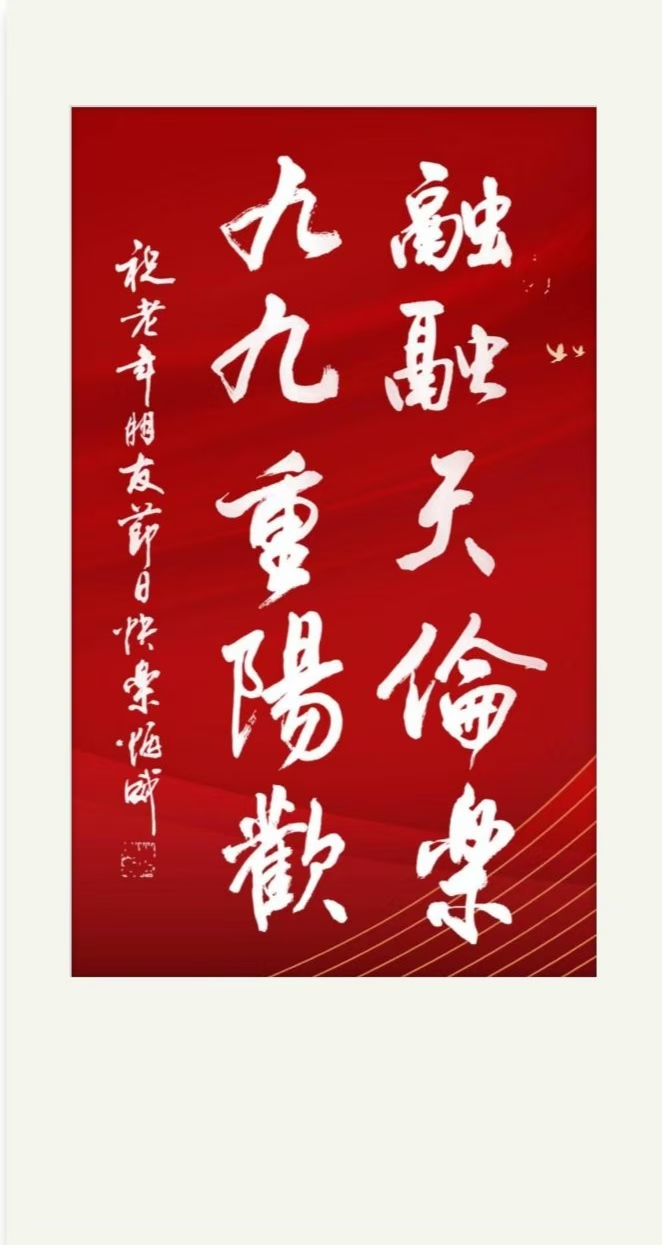 此外在重阳节期间,原教务处副处长蒋炳威老师创作了“融融天伦乐,九九重阳欢”的书法作品,祝福全体济光老师节日快乐。