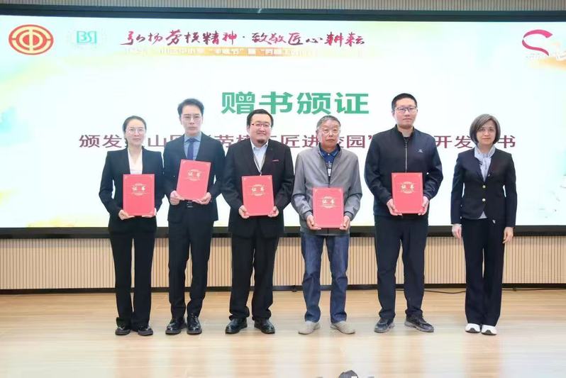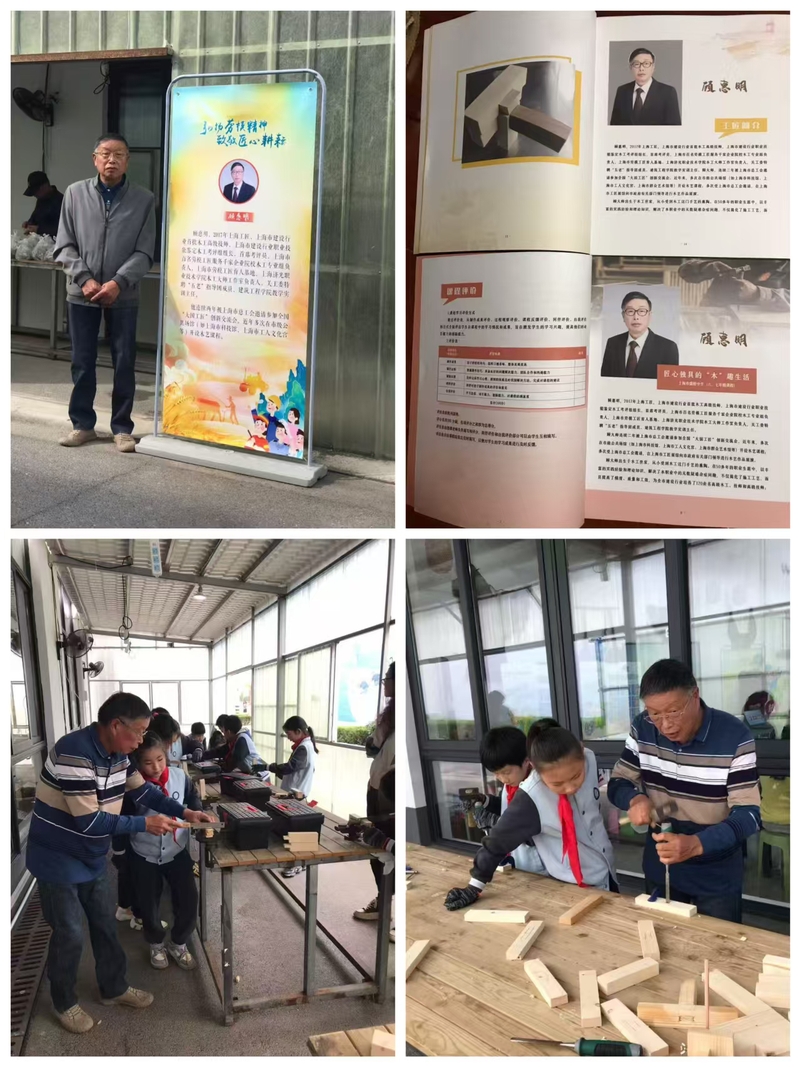 活动现场,宝山区人大常委会副主任、总工会顾瑾为顾惠明颁发“宝山区劳模工匠进校园”课程开发证书。顾惠明为现场师生带来了榫卯工艺体验。