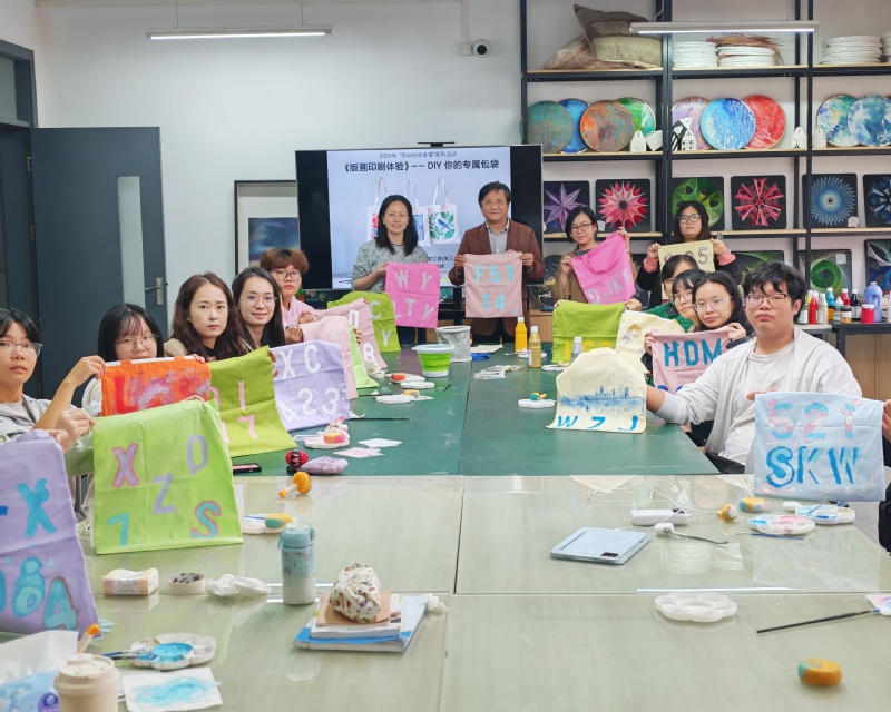 2025年11月5日,由校工会、关工委和设计创意学院济艺坊共同主办的劳动创造幸福系列活动之“《版画印刷体验》——DIY你的专属包袋”在杨浦校区顺利举办,二十余名师生参与其中,通过版画印刷这一传统工艺,将劳动实践与文化创新深度融合,打造出独一无二的定制包袋。