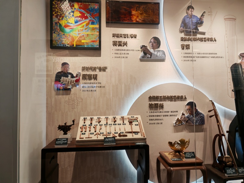 (上海工匠馆中陈列了我校顾惠明大师亲手制作的建筑斗拱微缩模型和25件木工微缩工具)