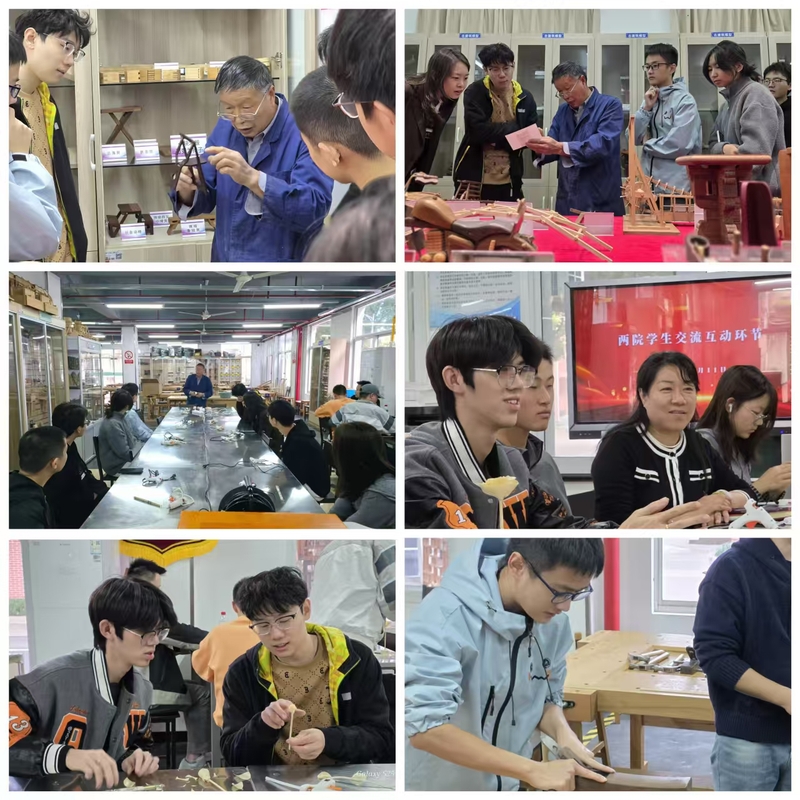 2025年11月11日,同济大学土木工程学院师生代表来到我校城市空间数智学院木工大师工作室,开展了一场以"木刨花永生花制作"为主题的跨校实践主题党日活动。此次活动通过参观交流、技艺实践、学习研讨三大环节,搭建起两校支部组织共建、资源共享、活动共办的“党建+专业”育人新模式,以党建引领推动党建工作与教育教学深度融合,助力高素质技术技能人才培养。