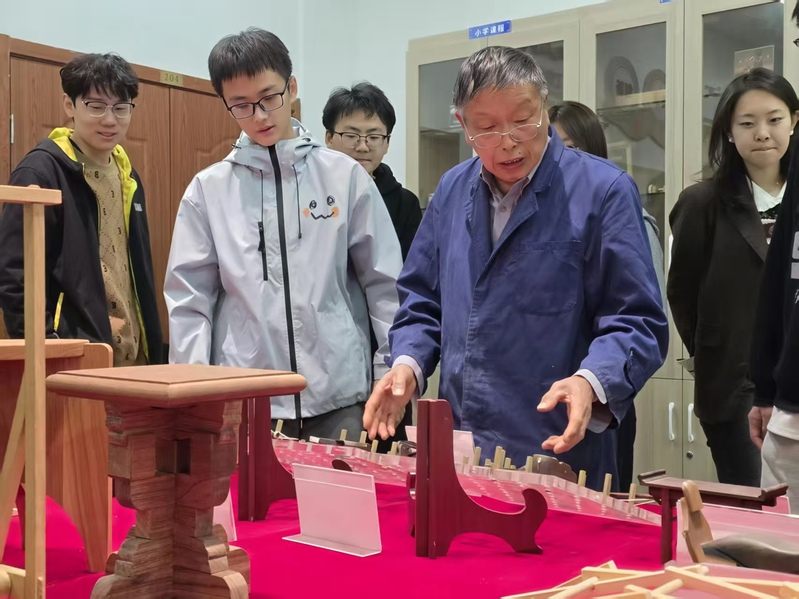 活动首站,我校木工大师工作室负责人、上海工匠、城市空间数智学院教学实训主任、关工委“五老”成员顾惠明大师亲自带领同济师生参观工作室与陈列室。在陈列室中,顾大师重点展示了其自主研发的微缩木工工具系列,这些等比例缩小数倍的木刨不仅具备实用功能,更体现了“小中见大”的匠心设计。通过现场操作演示,顾大师向两校师生诠释了“传统木艺与现代职业教育融合”的创新融合新路径,其精湛技艺赢得在场师生一致赞叹。
