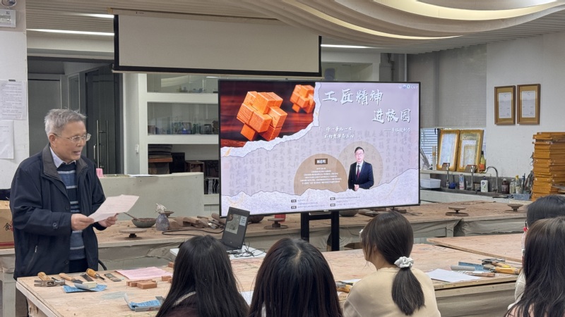 11月18日,受同济大学关工委邀请,我校“五老”指导团成员、上海工匠顾惠明走进同济大学,为同济师生们带来了一场工匠精神宣讲与木艺体验活动。本次活动由同济大学关工委和上海济光职业技术学院关工委联合主办,同济大学建筑与城市规划学院关工委分会承办。同济大学关工委副主任陈立丰、关工委办公室主任周海英、同济大学建筑与城市规划学院关工委分会一号老同志李文敏,我校工会常务副主席、关工委办公室主任王滟,木工大师工作室郁勇勇参加活动,活动由建筑与城规学院郑晨主持。