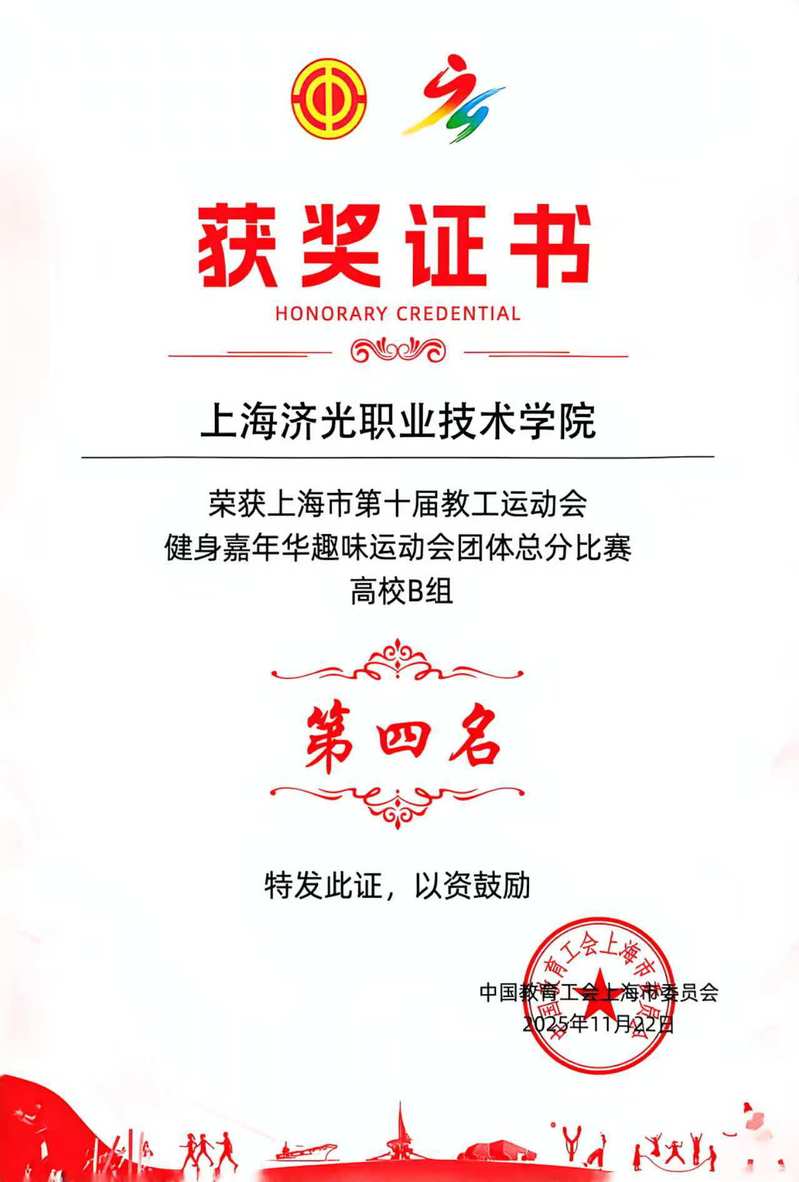 以“立德树人、健康先行”为主题,旨在倡导将健康理念融入教育实践,展现上海教工队伍“健康奋进、团结超越”的精神风貌的上海市第十届教工运动会启动仪式于2025年11月22日在东方绿舟举行。活动由中共上海市教育卫生工作委员会、上海市教育委员会、中国教育工会上海市委员会联合主办,来自全市各高校、区教育局及直属单位的80余支代表队、近3000名教职工齐聚一堂,共赴盛会。我校在经济管理学院、体育教研组的大力支持下,组织了由各单位教职工参与的25 人参赛队,参加了全天的所有项目。