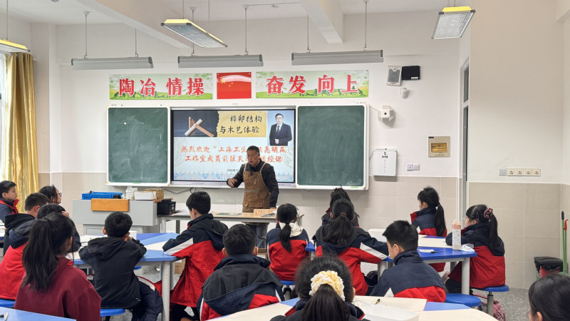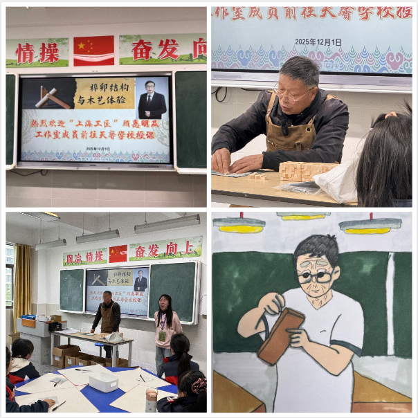 2025年12月1日,我校上海工匠、木工大师工作室负责人、城市空间数智学院教学实训主任、关工委“五老”指导团成员顾惠明老师,应邀走进天馨学校小学部校园。这位深耕木艺教育五十余载的资深工匠,携手团队为孩子们带来了一场沉浸式的传统木工技艺体验,在榫卯结构的精妙中播撒劳动精神的种子。