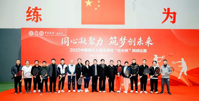 12月27日,2025年上海市高校“校长杯”网球比赛在上海大学玄陵网球中心开赛。本次比赛以双打组合形式开展,旨在通过协作竞技深化沟通、凝聚共识。我校贺鹏飞与中国银行郑经伯组成跨界组合,共同挥拍上阵,展现校企联动的体育精神。