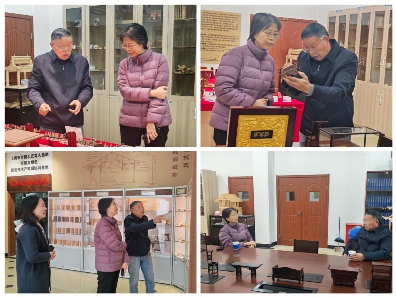 比赛前,同济大学专家参观了我校木工大师工作室,并与上海工匠、我校“五老”指导团成员顾惠明进行了沟通交流。