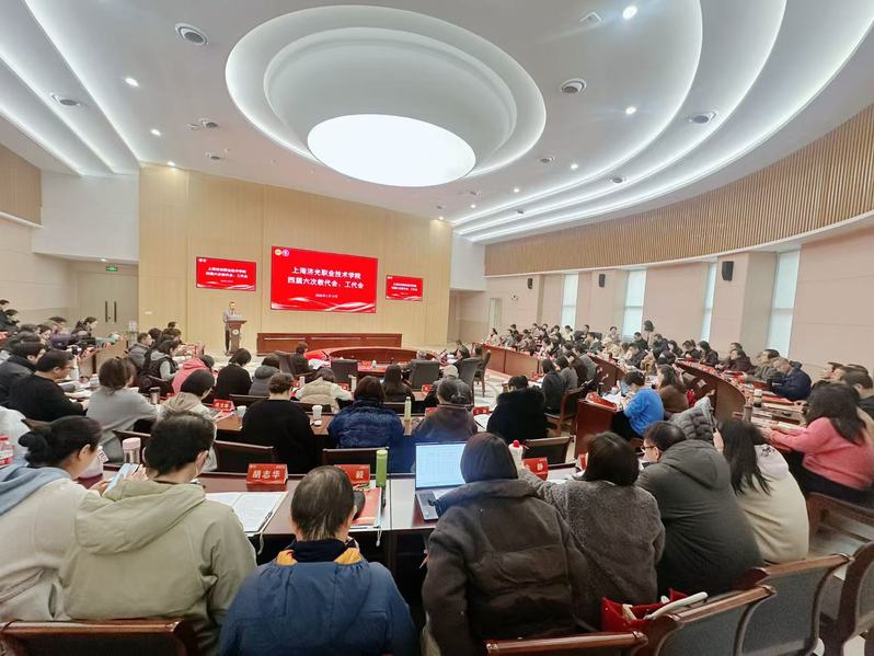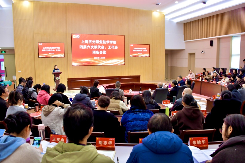 2026年1月15日,上海济光职业技术学院四届六次教代会、工代会在大学生活动中心圆形会议室顺利召开。大会聚焦“十五五”发展蓝图,正式代表、列席代表齐聚一堂,共谋学校高质量发展大计。大会由副校长、工会主席王云飞主持。