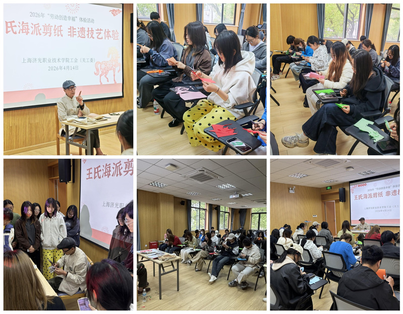 为弘扬中华优秀传统文化,推动非遗文化进校园、入人心,扎实推进美育与劳育深度融合,我校工会(关工委)于4月14日开展2026年劳动创造幸福——王氏海派剪纸非遗技艺体验活动。